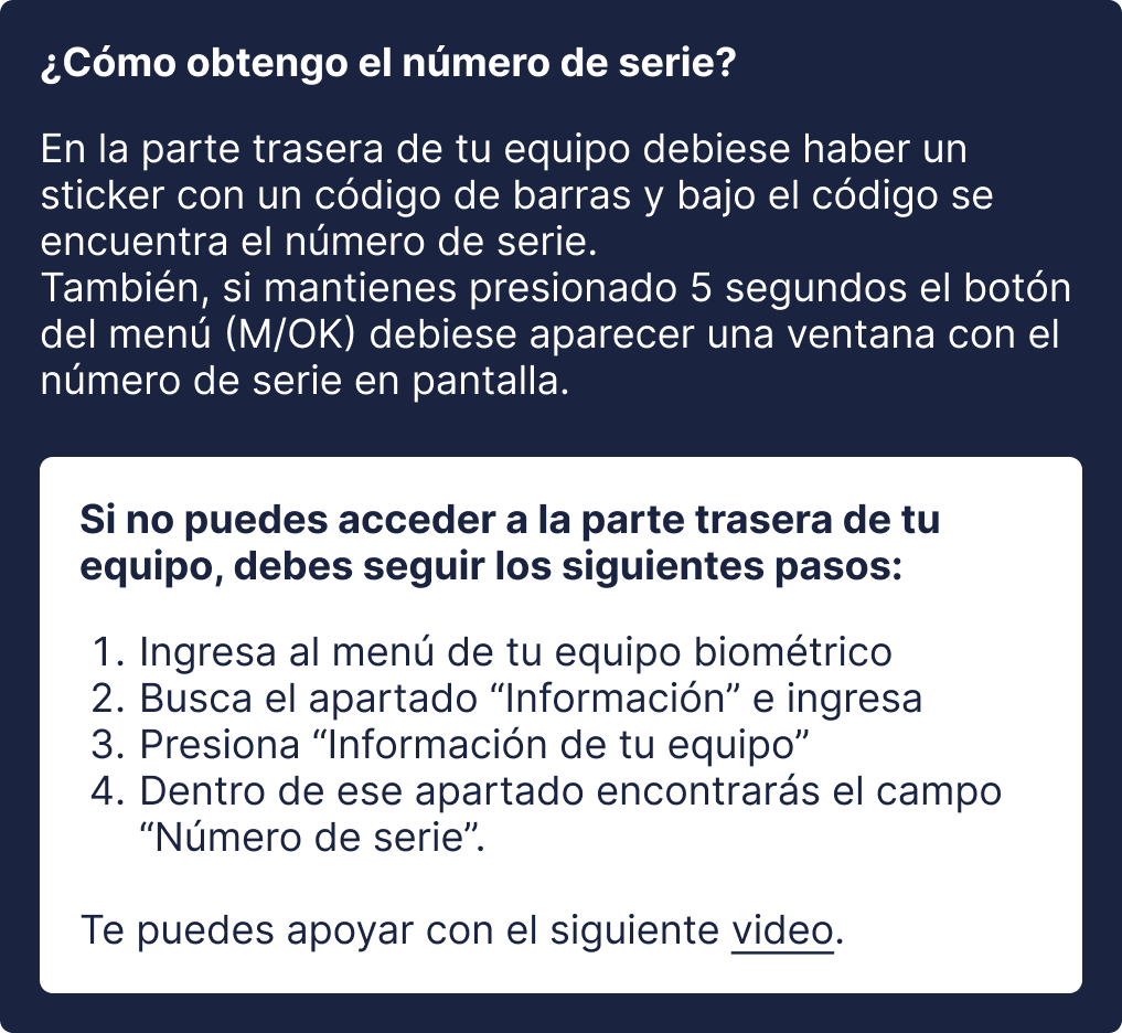 Te ayudamos a confirmar la compatibilidad de tu equipo biométrico con nuestra plataforma de Control de Asistencia.
